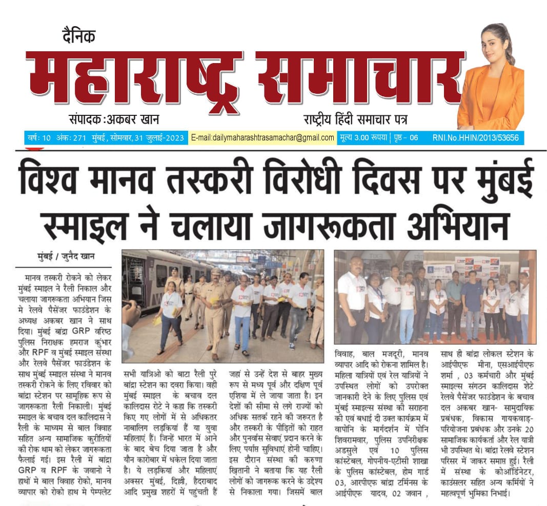 Mumbai Smiles conducted a campaign on the World Day Against Human Trafficking