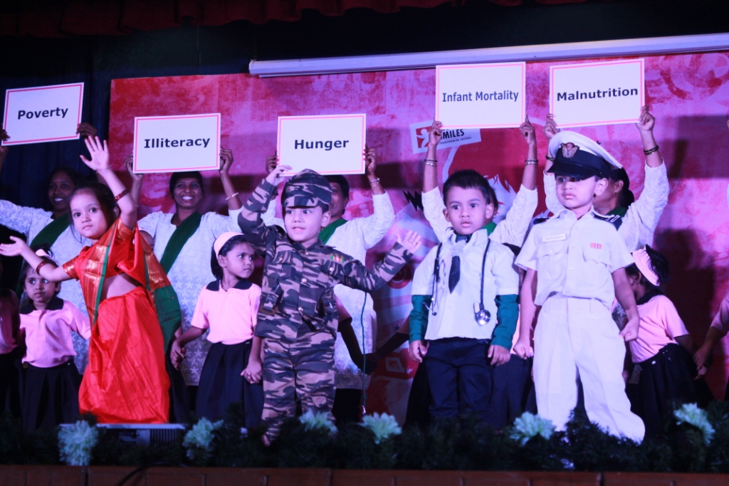 The second part of the program involved performances by beneficiaries of various projects. The audience applauded when the Balwadi children started performing “We Are the Future”. The children danced while their teachers waved balloons and presented cards with problems faced by slum children.