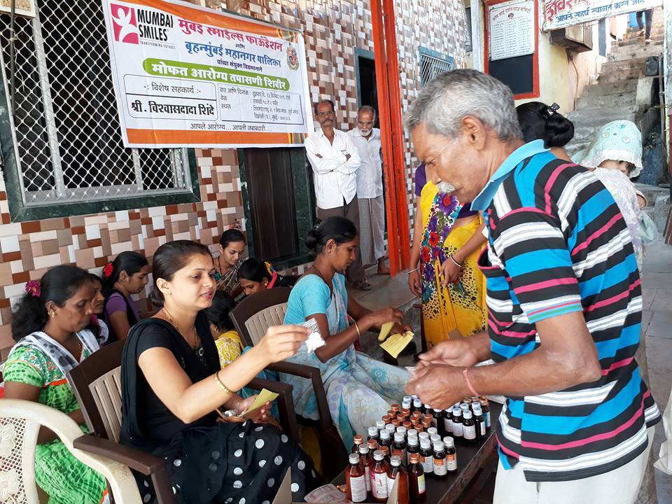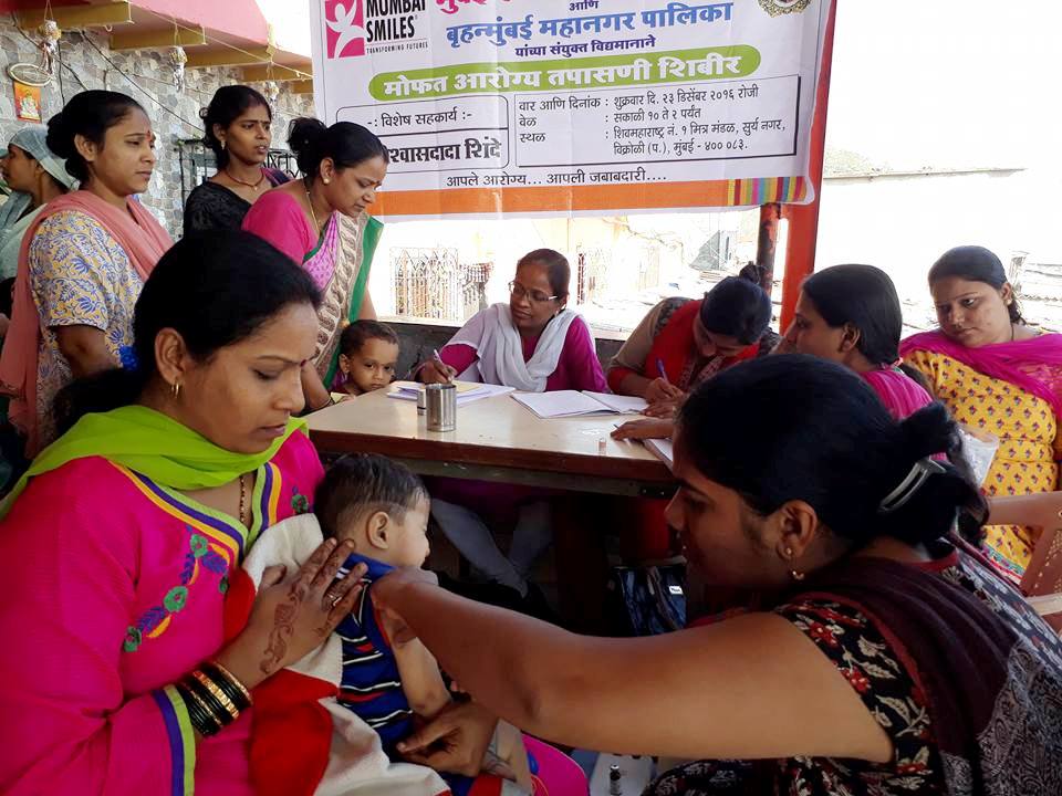 One such camp recently screened 250 beneficiaries at Suryanagar area in Vikroli (northern Mumbai). Dr. Jayendra Gawade, Dr. Shamal Goregovkar and Dr. Deven Rathod attended to all the beneficiaries starting with the basic checkup of blood pressure and pulse and moving on to check for infections. Along with the checkups, the children were also vaccinated against malaria, polio and other diseases.