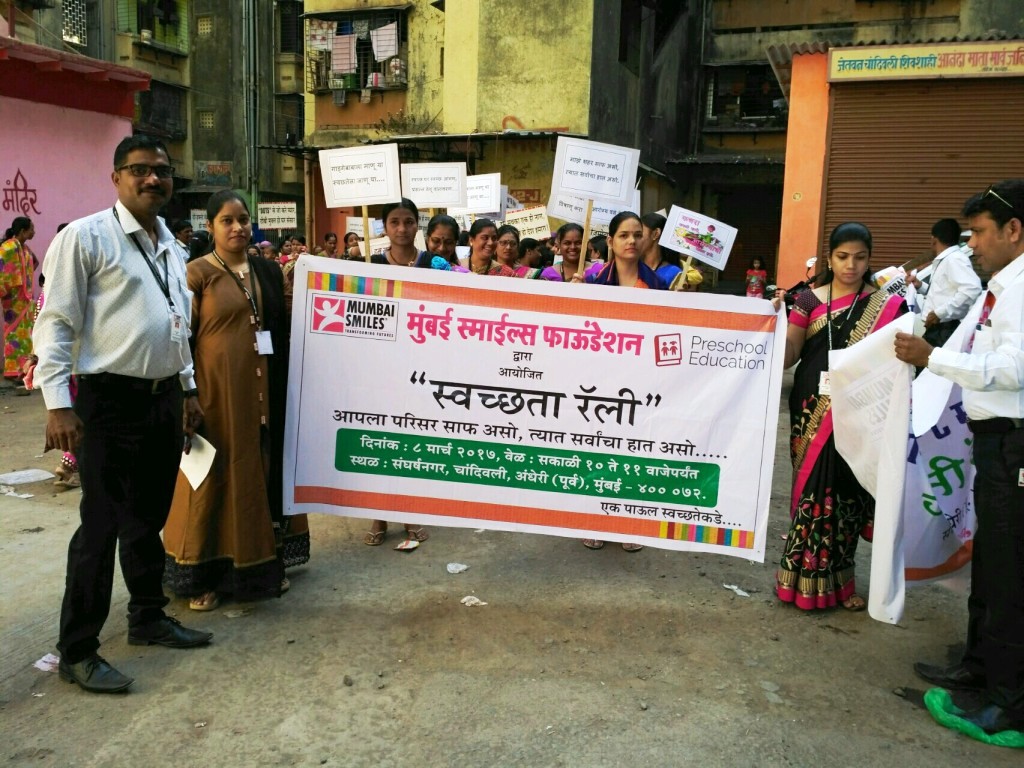 With almost 400 citizens in attendance of the Rally, including 248 parents, 30 Self-Help Group members, 15 staff members of Mumbai Smiles and more than 100 other community members, participating in the rally with saying out cleanliness related slogans for around 4kms in the area, the Rally reached a successful closure with other community members coming forward and reading the slogan-banners and later on asking questions about health and sanitation. We hope to see good results of the same too in our communities and among our citizens, for a healthier and cleaner Mumbai!
