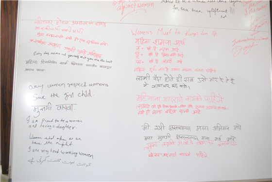 The event started off with the expression of the thoughts by the women on the theme for this year, “A promise is a promise”: Time for action to end violence against women. All the women were invited to pen their thoughts on the board related to the theme. Women wrote different kinds of messages on various issues like violence, abuse and most importantly, female foeticide and right to education for girls.
