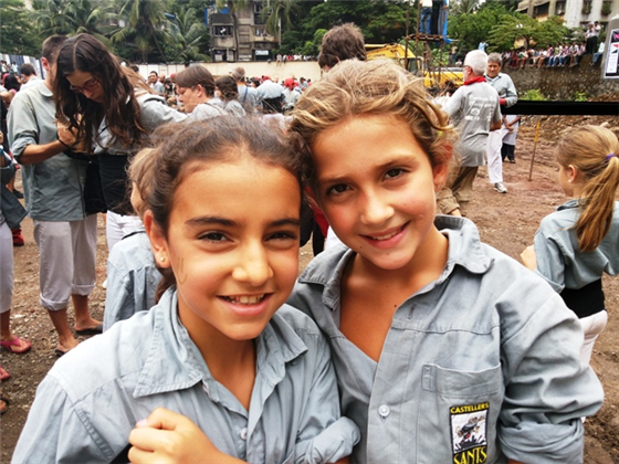 The Spanish Govindas performed at the Powai BMC Ground today at noon. There were 190 Spanish Govindas from all age groups, right from less than 10 years old to over 80 years of age. The 2 girls who were extremely well trained made their way to the top of the human pyramid in seconds.