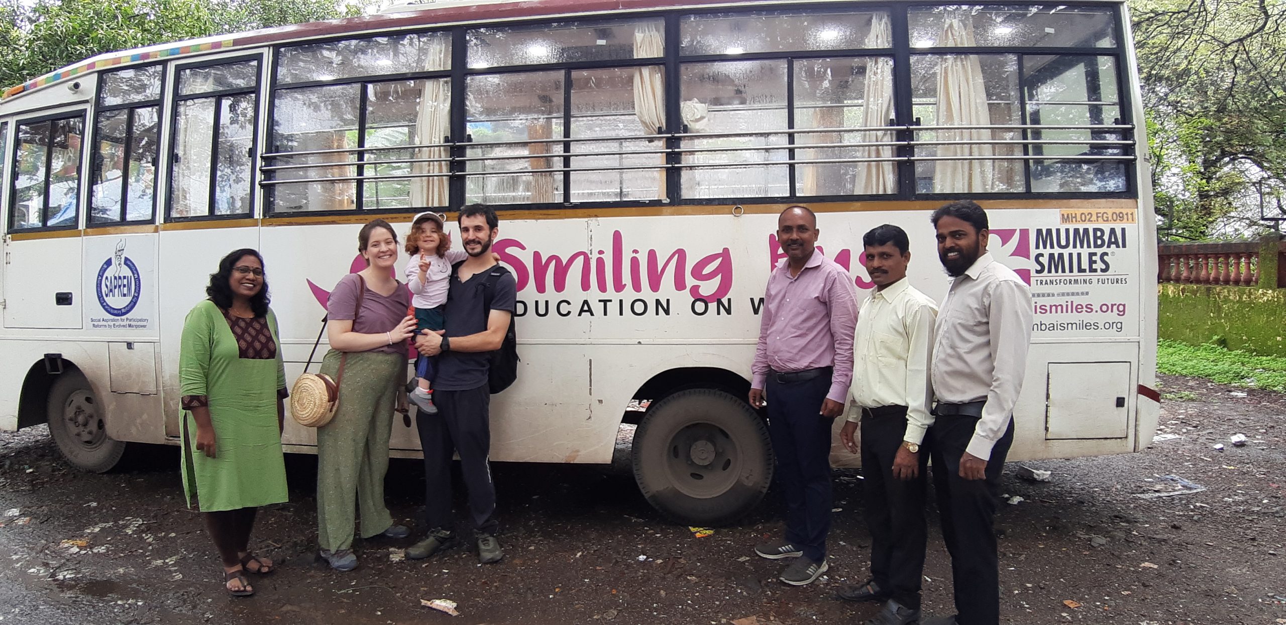 The first week we have the visit of a lovely family. A special visit since Alicia and Albert came accompanied by their two-and-a-half-year-old daughter, Abril, and we don’t usually have such young visitors, which we love. They came from Pune to meet our Smiling Bus, they really wanted to meet us. Abril’s enthusiasm had no limits. She loved visiting a kindergarten, she participated in activities and shared some of the songs that she had learned last year. It was a memorable and loving visit!