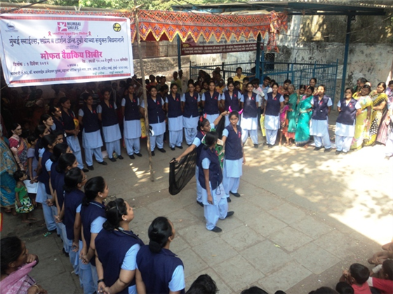 One of these was also a street play, performed by students of the Hiranandani School of Nursing in Powai, performed in the Phule Nagar IIT Market slums in Powai.