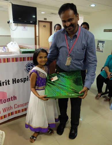The event took place on 29th October 2014 at the Holy Spirit Hospital, along with other members of HSH and Mumbai SMiles. Ananya’s story is unique and different. She is 9 years old and at this young age, she had to cope up with Acute Lymphoblastic leukemi, a type of Blood Cancer. She was living with it since 2009 and her treatment was recently completed in 2012. Post 2012, her follow up sessions take place regularly. Ananya is now fit and ready to pursue her education and other hobbies just like other children. She has in fact been awarded scholarship under our HOPE project that will enable her to continue her education.