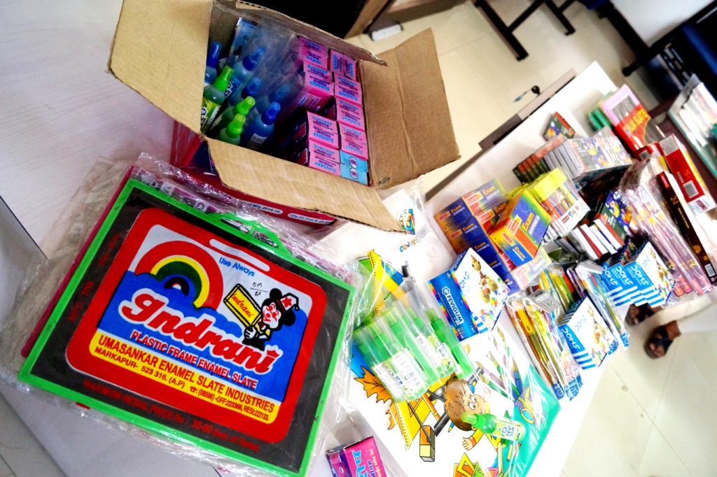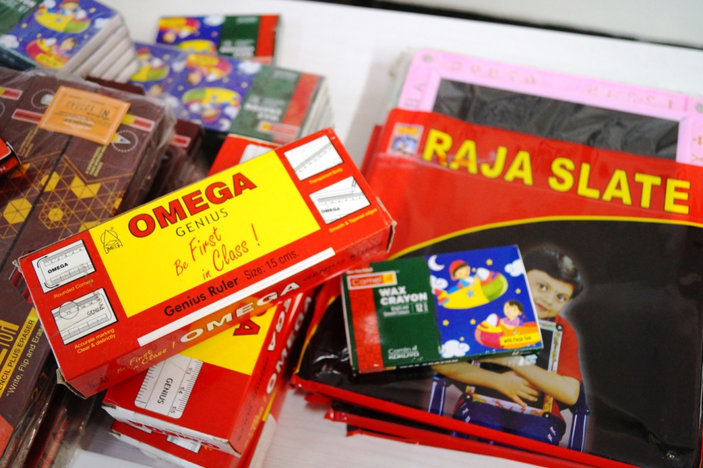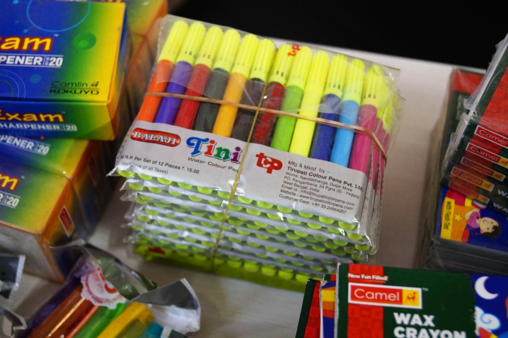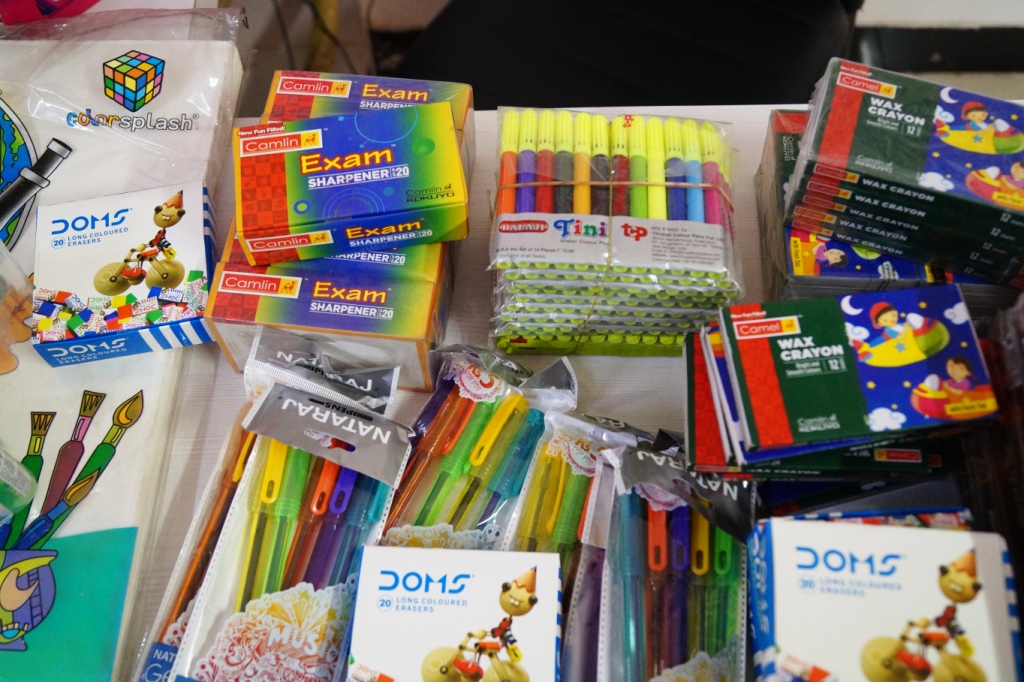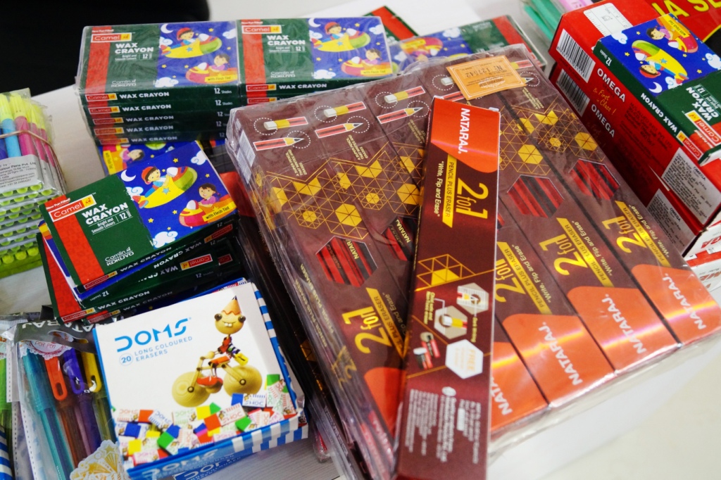 We want to share with you all today, an incident of an extremely kind gesture by two anonymous good-hearted people, who donated a huge collection of new stationary for the underprivileged children whom we work with. This huge bunch consisted of new slates, ball pens, pencils, coloured erasers, blank art sheets, glue, rulers, sharpeners, wax crayons, and many more such stationary products for our children!