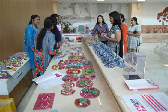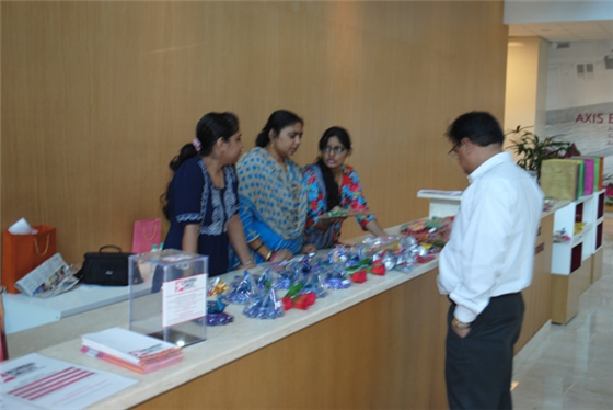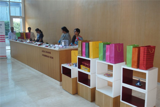 Axis Bank Foundation gives an opportunity to NGOs to display products at their corporate office at Worli, Mumbai. Axis Bank partnered with Mumbai Smiles and the stall was put up for sale of products on the 15th of October. A number of products were sold and Axis Bank employees were appreciative of the products made by the Women.