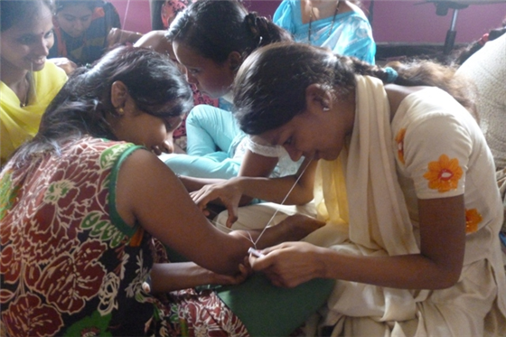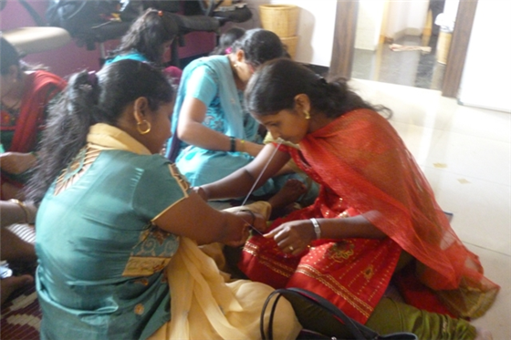 It’s just been 1 week of training and you can see the girls and women fully engrossed in learning the threading skills. It is ensured that in these training sessions practical and theory classes go simultaneously. As this training on beautician is all about finesse with which one does the threading, facial or any other beauty culture method, so for this particular course more emphasis is being laid on practice session.