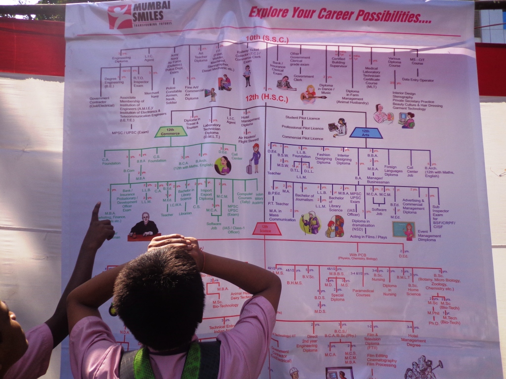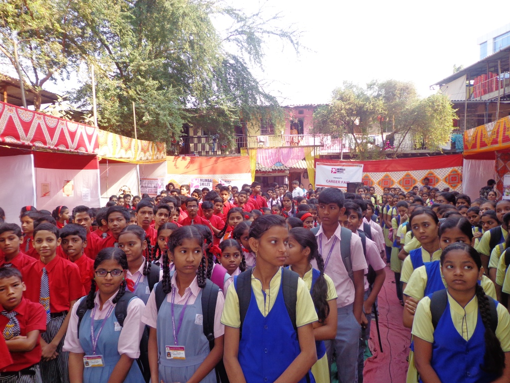 The Education department of Mumbai Smiles recently organised a Career Fair for 700 school & college students and their parents recently, to answer these very questions. With representatives of different institutions, colleges and organizations such as Nirmala Niketan, Kohinoor Technical Institute, NIIT and many more, that provide career counseling and courses to pursue the various professional fields, interacting with the students, the career fair was full of hustle and bustle – students being their inquisitive selves, divided into groups of 10, spending about 10 minutes at each stall of the fair, asking all the Whats and Hows of the fields of their interest.