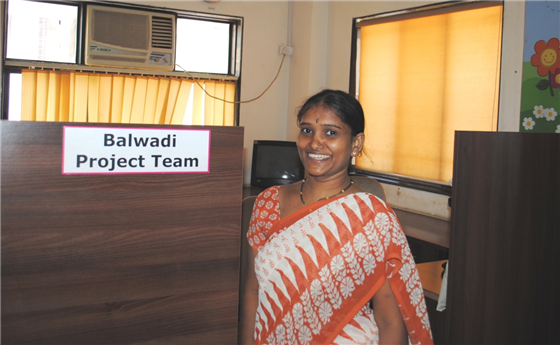 Ms Chandrakala Bhangare, one of our Balwadi teachers was finally selected for this role. Her story indeed is very interesting, inspiring and speaks volumes about the progress and growth that is a result of hard work and dedication. Chandrakala has been associated with Mumbai Smiles since July, 2010 as a Balwadi Teacher. She completed her B.A (Bachelor of Arts) and B.ED(Bachelor of Education) before joining Mumbai Smiles. She used to teach history and hindi to 8th and 9th class students prior to joining Mumbai Smiles. However, she had to leave her job because of her pregnancy. She joined a non profit organisation – Samajik Sanstha during this period. This is what she had to say when asked about her reason to work even during her pregnancy-” I wanted to work and not sit at home. This gave me an opportunity to connect with people and also contribute to the society. It was difficult to manage in the first year since I was pregnant and I had to visit office often for training. My husband used to work in the night and take care of kids during the day whereas I worked during the day and took care of children during night.”