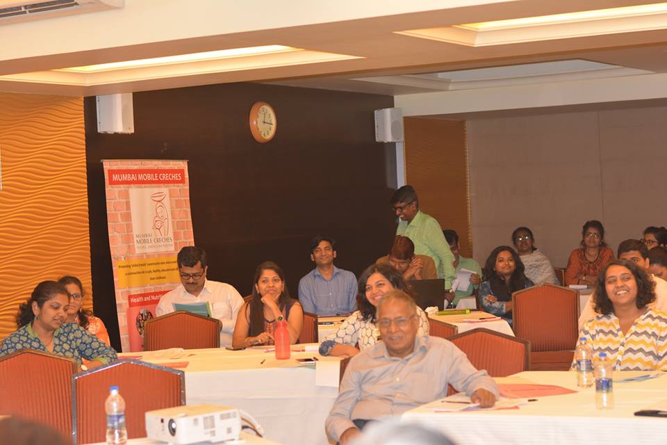 Our work with the slum communities involves interaction with all kind of daily wage workers, right from labourers, to rickshaw drivers, to vegetable vendors, to milkmen and every other person we can think of whom we come across on a regular basis, who are our daily support system. And in order to ensure ourselves that we are providing the best of the services that we can, our team, time and again, tries to engage in workshops and sessions from where they can gather more information and resources to improve our network and services. And so recently, Mumbai Smiles participated in a workshop called “Childcare for the Vulnerable Young”, that was organised by Mumbai Mobile Crèches, an organisation which works for the children of migrant construction workers living on the construction sites. With a total of 40 participants in this conference cum workshop, Mumbai Smiles was represented by two of our Program Officers, Pragati & Vikas, where they engaged in activities and discussions on the challenges faced while working with the underprivileged in the age group of 0-6 years. Various panel discussions were also held to engage the various stakeholders present at the event, on the topics of Government Policies on Child Rights, Challenges in implementing the different policies, building network for effective grass-root work for tribal, migrant, institutionalized children and other related topics, which was supported by real life examples from the participants and a brainstorming session on how to solves the different issues that crop up on a regular basis.