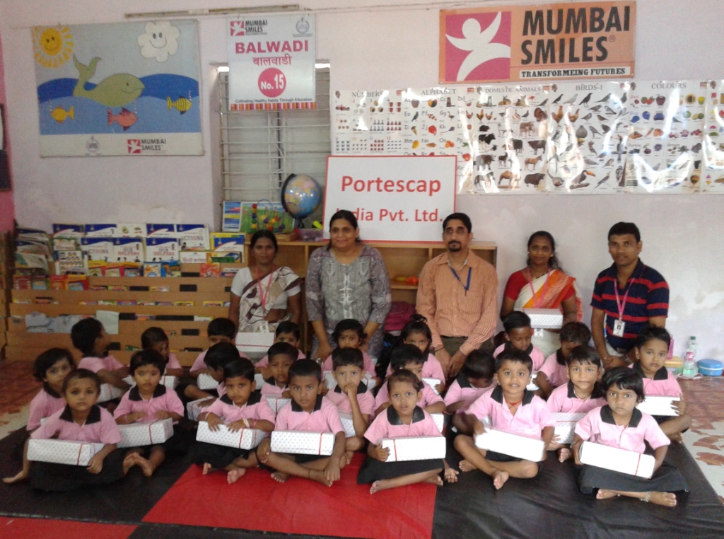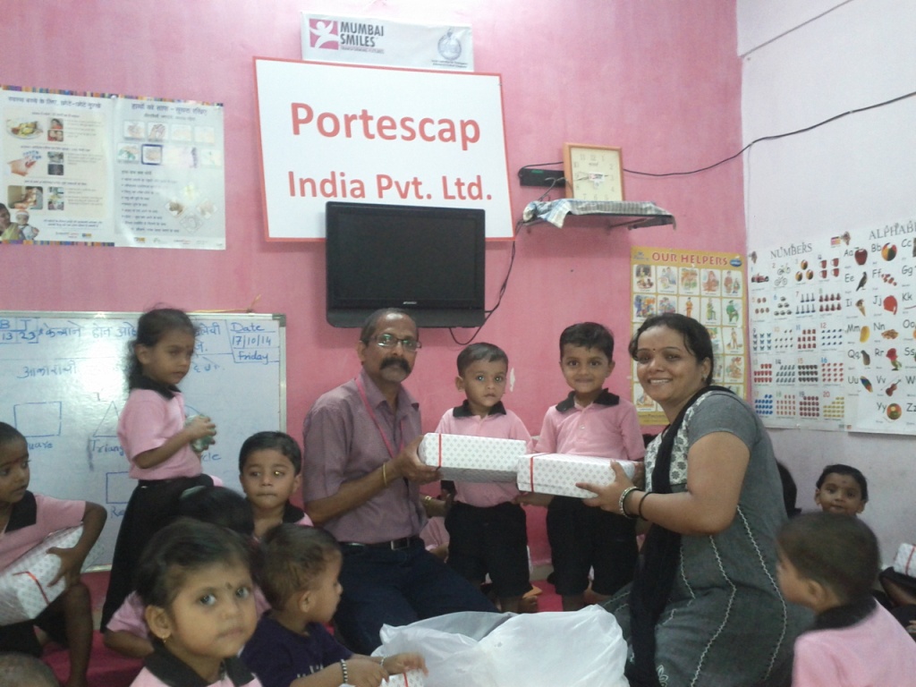 With the same objective, we shared our joy with our Balwadi children through chocolates since we believe that children should be the first receivers of such joy and virtues. Chocolates were distributed among 700 balwadi students and teachers. Portescap, an organisaiton based out of Andheri East, partnered with us for distributing chocolates among the children. The same organisation collaborated with us last year during the “Joy of giving week” and is also associated with our Girl Child Education initiative and Balwadi Project.