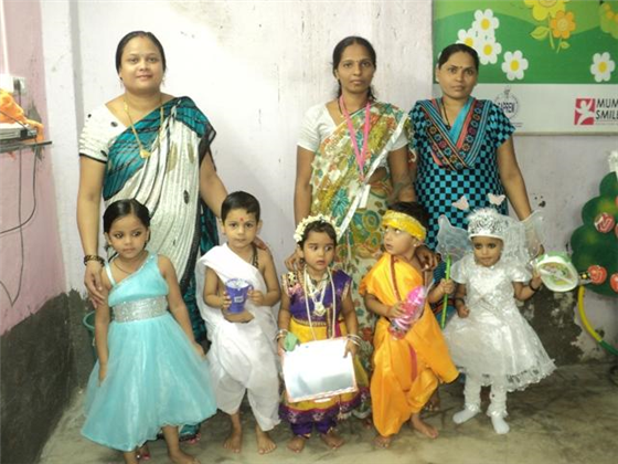 It was celebrated across all the 23 Balwadis running under Mumbai Smiles. On this occasion several activities were carried out for the Balwadi kids. The activities included fancy dress competition, singing songs, reciting poems etc. For the kids it was sheer fun and joy as they were part of activities which were somewhat different from their usual routine classes. They rejoiced in it a lot as they wore bright new clothes and on being asked about it, they responded back saying; I am wearing my favorite dress portraying my favorite character.