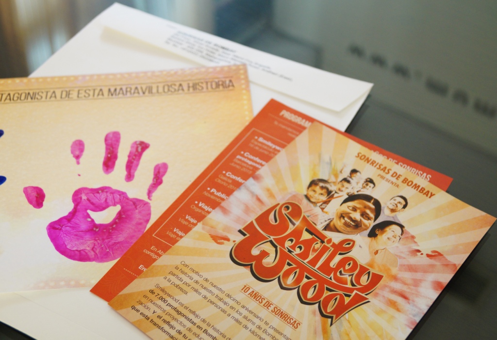 Two countries; one goal, two countries; one emotion! 10 years of celebrating the joy of empowering the slums of Mumbai, Mumbai Smiles in Spain brought all its well wishers together for Smileywood. The celebrations began with bringing the Indian emotions to all our Spanish donors, partners and collaborators in the form of an ‘Emotional gift’. The gift consisted of a sheet with hand prints of our beneficiaries as a way to thank the continuous support from them.