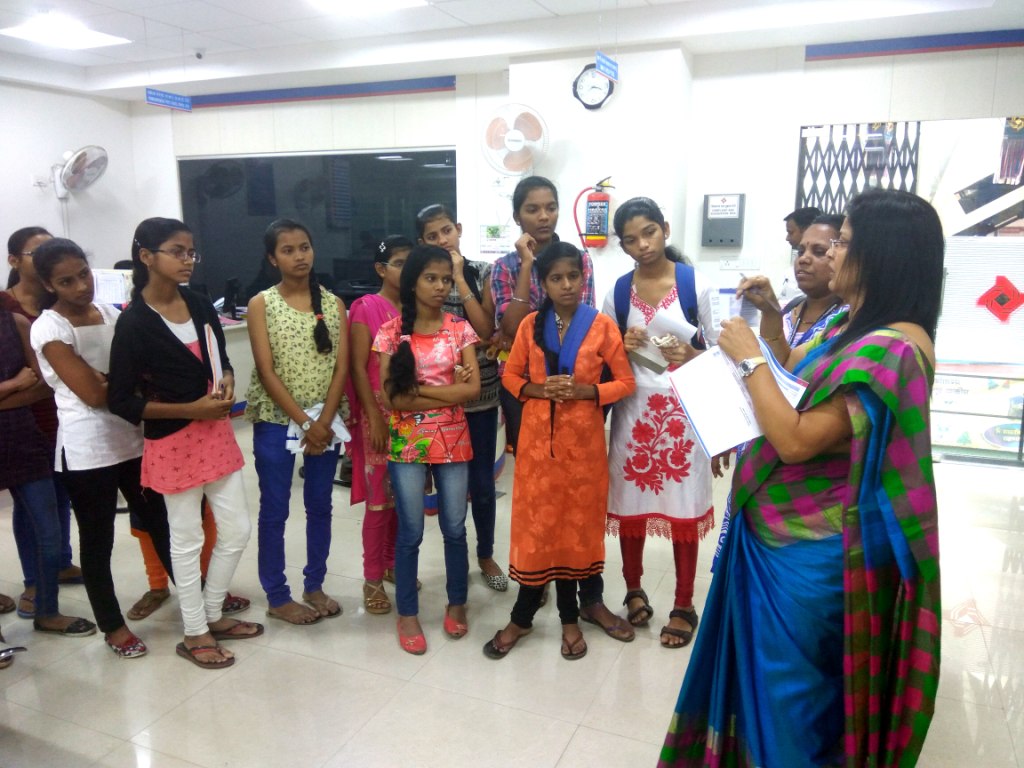 The latest exposure visit for the LSE girls and boys was to a bank nearby. The Central Bank of India, JB Nagar branch (near Marol area), led by Mr. Gajanan Bhoi, the Bank Manager, was more than happy to give a crash-course on the functions of a bank and its utility for common man for our LSE beneficiaries. With the objective to inculcate financial literacy as well as attempt to spark off a good habit of regular and organised saving, the visit to Bank was a comprehensive one.