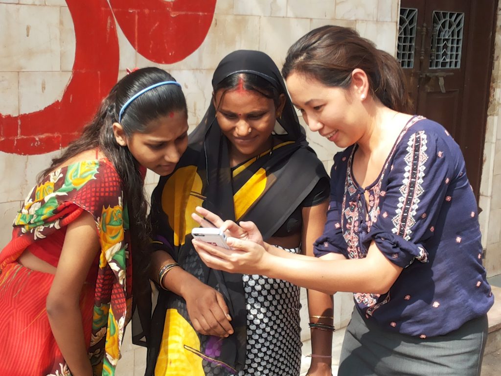 Alice Lin Fabiano, Director of Worldwide Corporate Contributions, Johnson & Johnson (partner in M-Mitra project) interacting with the beneficiaries