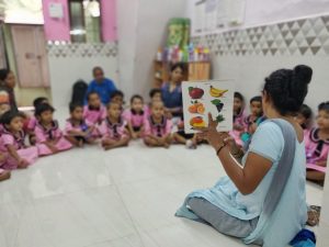 Recently, a few members of the Monitoring and Evaluation team paid a visit to our preschool at Sangharsh Nagar in Chandivali. The team was introduced to the children and the teaching staff at the preschool. After observing a class in progress, the team also inspected the lesson plans and other teaching material in use. Attendance records and food records of all the students were also checked, so that any lag could be identified. The M&E team conducts such visits frequently to all our preschools to ensure that they are fully aligned with our mission and performing at their fullest capacity.