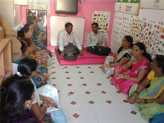 The meetings were held between 2-4 p.m. The Balwadis covered included 8 balwadis of Marol pipeline, 6 of Sangharsh Nagar, 6 of Powai, 2 of Kanjurmarg, and 1 of Vikhroli. At each of the area meetings, 1 teacher from each Balwadi was present, along with the assistant, the field coordinator and program Officer (Vikas).The agenda of meetings included review of last month’s activities of each balwadi, display of toys and educational material, cleanliness of Balwadis, punctuality in balwadis, beneficiary contribution/fees collection, awareness of upcoming years admission, drop out forms submission, receipts book submissions, asset book submissions, leave applications submission, food and visit chart updation.