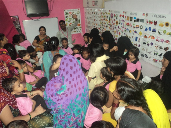 At all the 23 Balwadis, there is a monthly parents meeting that takes place. The agenda for parents meeting held in September included Welcome of the Parents, Agenda Reading, Review of Last Month activities of balwadi by teacher, Regular attendance of children in the Balwadi, Balwadi timings, Parents responsibility and contribution, Children Vaccination, every parent should have birth certificate for further school admission, healthy habits, Reading of Last month’s Weight/Malnutrition Grade of children, SHG related issues about supplementary nutrition, Experience sharing of parents, Beneficiary committee meeting amd Healthy child prize.