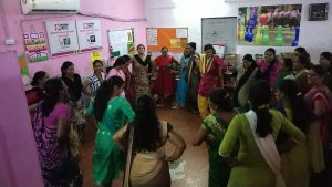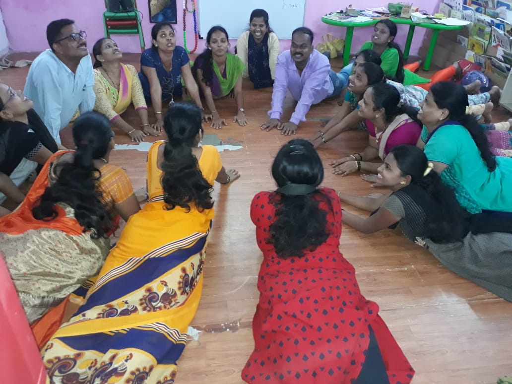 On 17 November 2018, the Preschool project conducted a refresher training for the teachers of our ten preschools. A total of 26 teachers underwent this training programme. The training covered a comprehensive list of topics that are an important part of preschool learning—preparing a class schedule, mathematical activities, literacy and storytelling, arts at the preschool level, body consciousness, relaxation and yoga, as well as preschool rhymes. These programmes are an important way for us to make sure that our teachers are in tune with our thinking on education as it evolves.