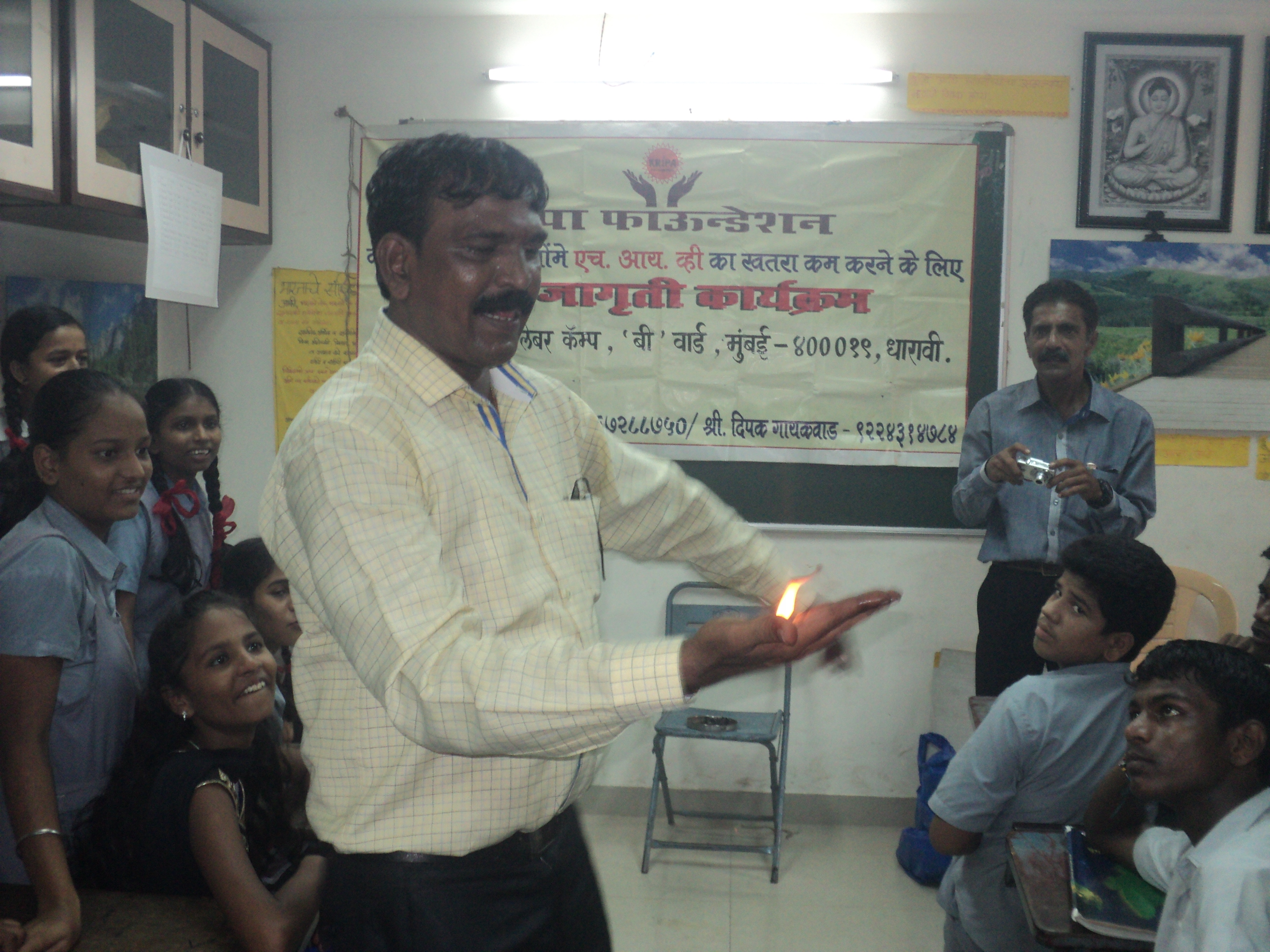 The second session was organised in Powai Marathi Madhyamik School by Mumbai Smiles and Kripa Foundation, one of the largest Non-Governmental Organisation dealing with addiction related issues. The highly qualified Resource Persons for this session were Deepak Gaikwad (Dharavi Centre In charge) and Mr. Rajendra Velinkar (Outreach Coordinator). The idea behind this was to show the students how people are misguided into taking drugs. A pictorial and graphical representation of the drugs and its related diseases created an impact on these students as we all know; pictures speak a thousand words.