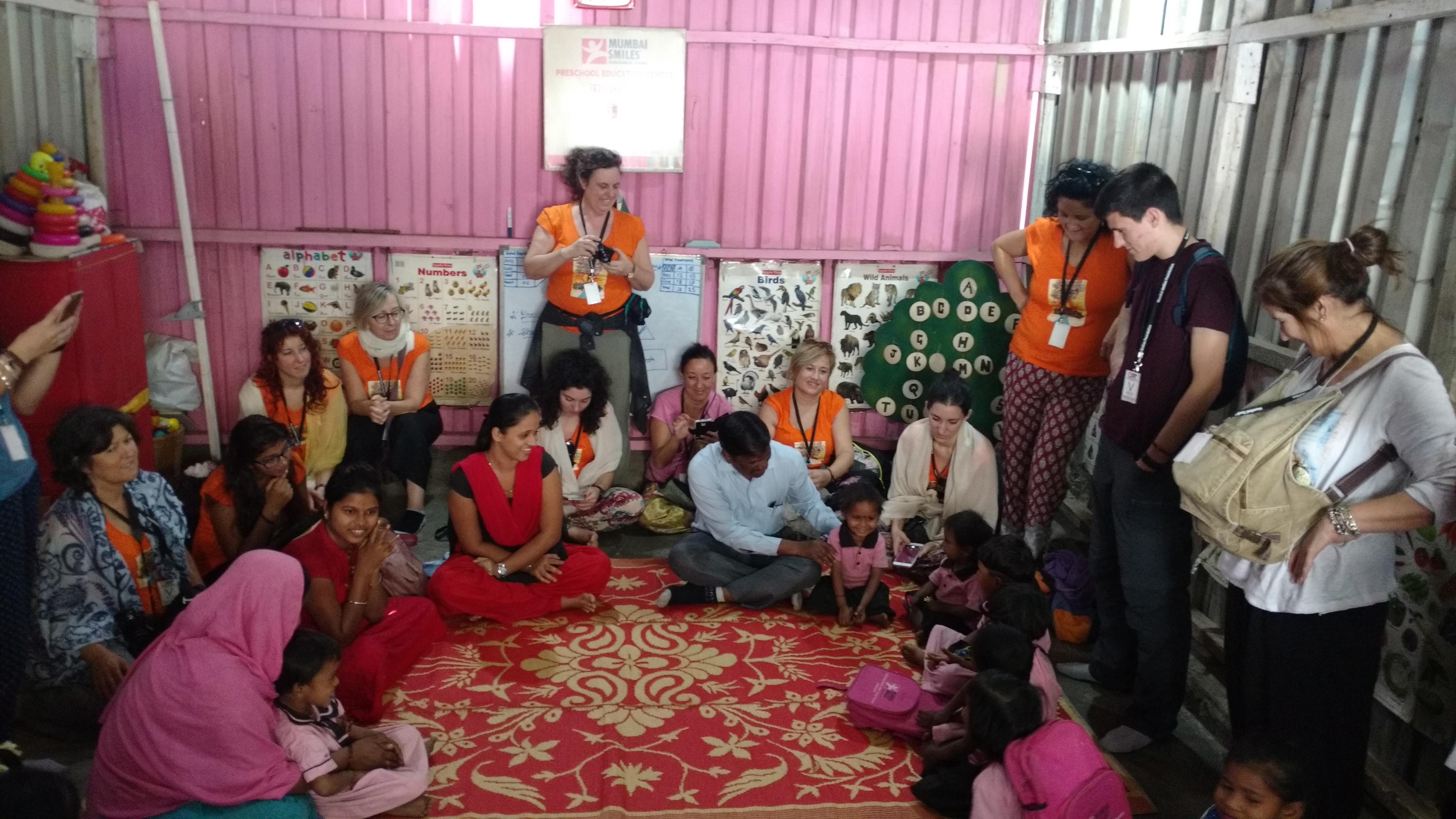 Despite being jetlagged and tired from their early morning flight to Mumbai, our visitors were extremely keen and excited to meet the heroes of our projects. The long awaited visit begun with interactive sessions and activities with preschool children of sex workers at Kamathipura; followed by a visit to the preschool centre for street children.