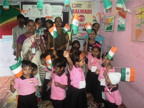 While the grand Republic Day Parade takes place at Rajpath, in New Delhi, where the President views the parade, state capitals also have their independent celebrations. Mumbai Smiles commemorated this day with an event and celebrations at all our balwadis (see photos).