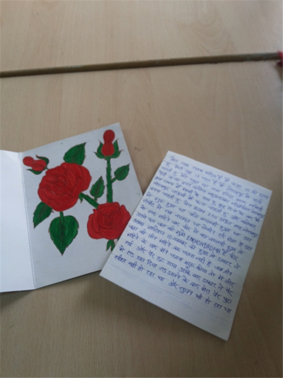 The HOPE team has helped Sangam pandey to such an extent that she is extremely touched by them. She shares a hard made card to show her gratitude and has sent it all the way from Gorakhpur.