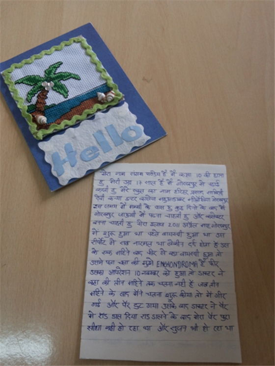 Sangam’s state of mind : Sangam is keen on leading an independent life. She wants to walk to school like before and not be a burden to anyone. She helps her aunty in making decoration materials. She is back in Uttar Pradesh after being fitted with an artificial leg. Having got admission into Standard X in Gorakhpur, Sangam is closer than ever to fulfilling her dreams.