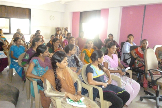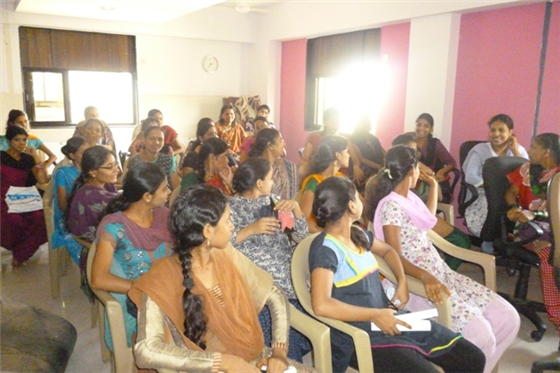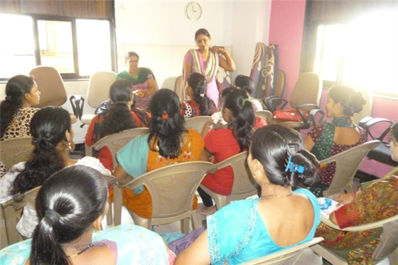 In the photograph above you can see one of our last year beneficiary share her experiences of training program with the curent batch. She now works at a parlour in Sakinaka in Andheri East area.