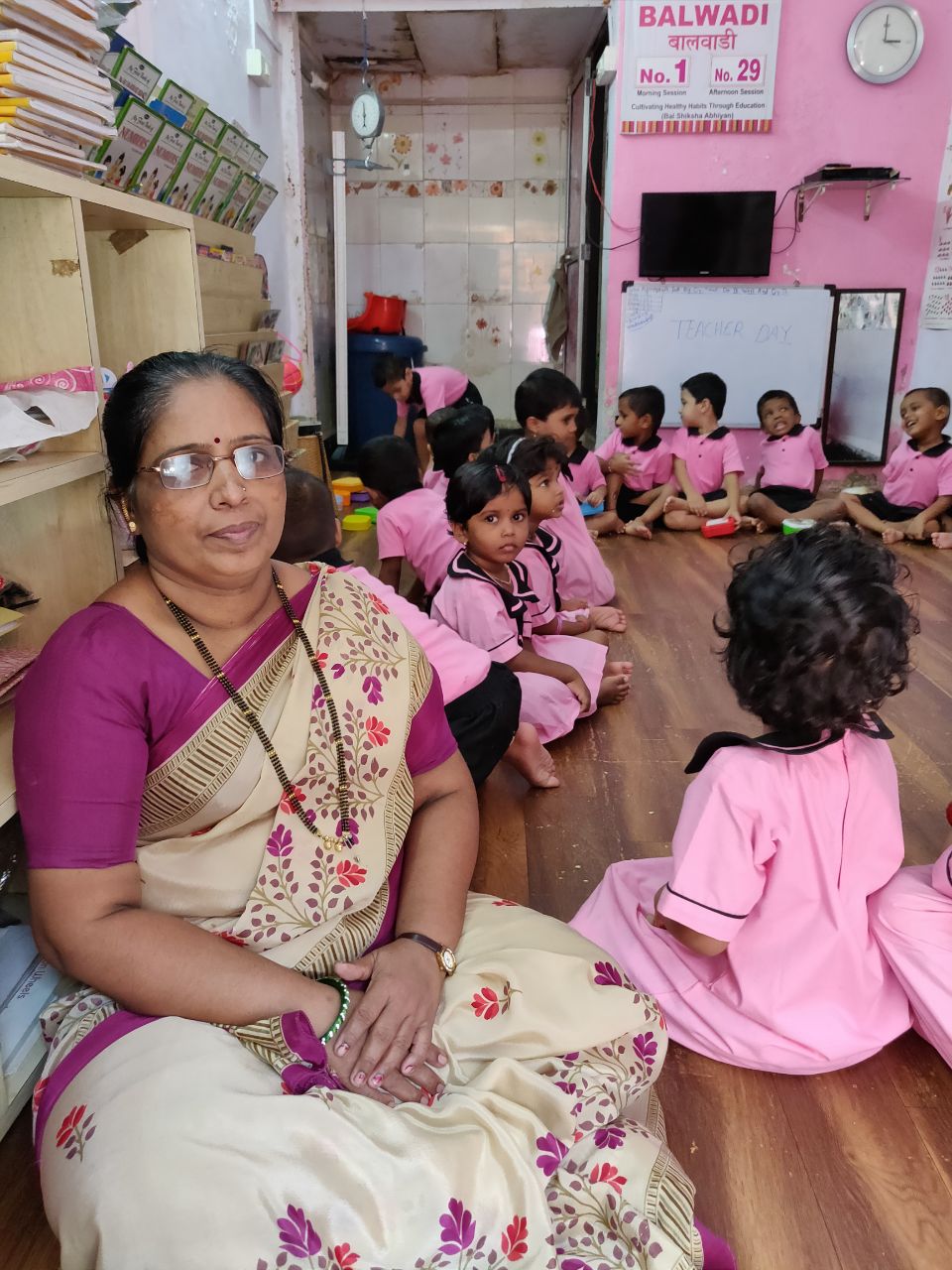 Swati has been a teacher for 16 years. She shared with us how she had to overcome tremendous opposition from her family and her in-laws as well as she pursued a teaching course. However, that did not stop her and she has been teaching since 2002. A true inspiration, at the age of 52 Swati is still learning—she is in the third year of hers studies in Marathi. She is very happy to be teaching the children of our Balwadi project—she understands the impact she can make in shaping their futures. Swati believes that her life has prospered after she started working with Mumbai Smiles. We hope that she continues to work with us and life showers even more prosperity on her.