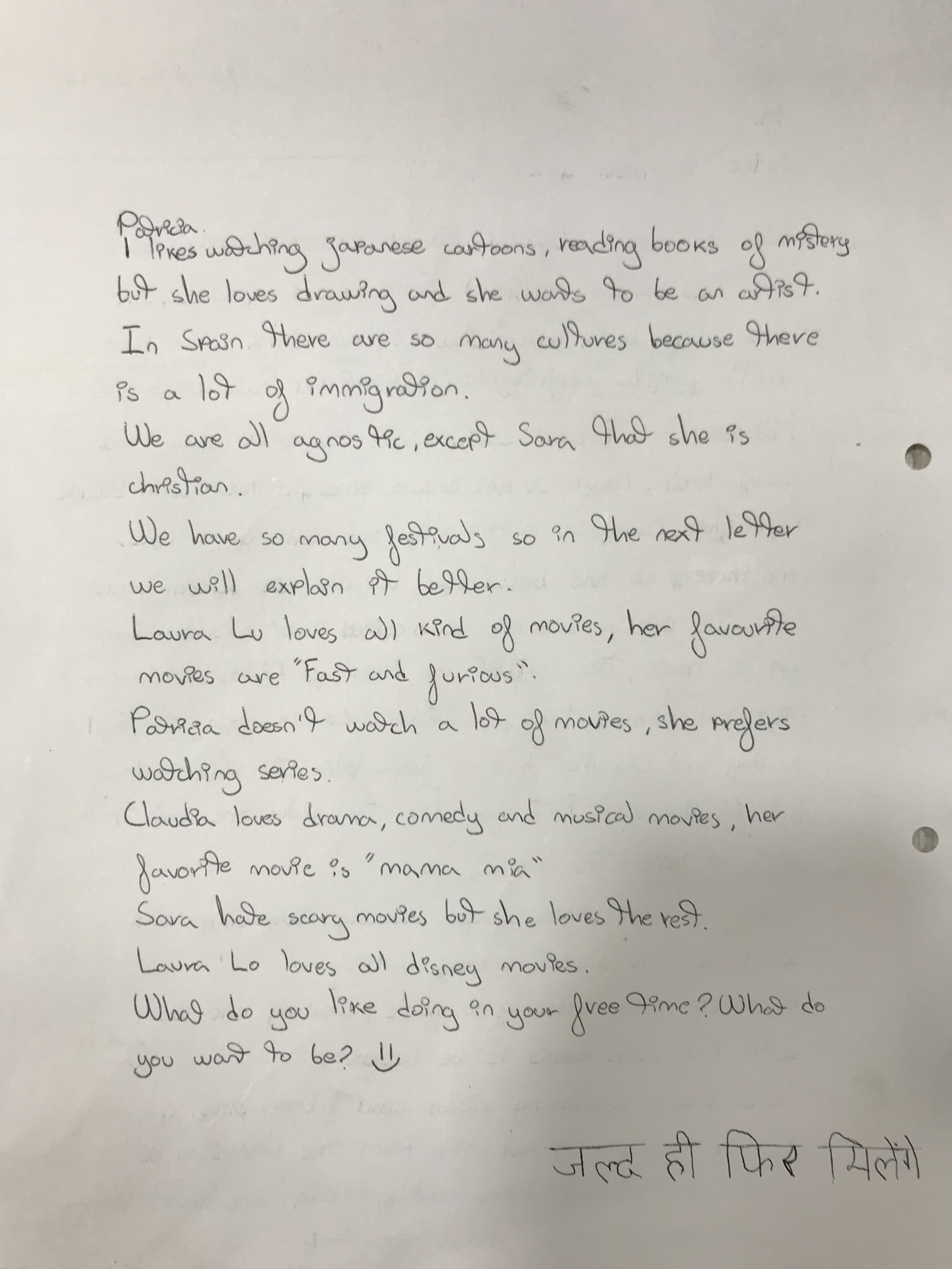 The pictures attached are some of the pictures of the actual letters sent from the Spanish students to the Indian ones 🙂