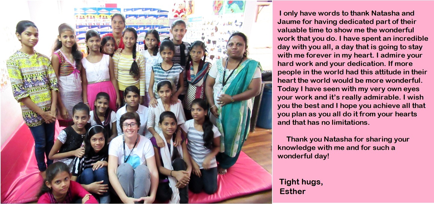 Esther Barreda Dominguez is one such important part of SDB as its volunteer, who, by profession, works in the logistics department of a company in Spain, and she recently decided to visit Mumbai Smiles herself. Having worked for SDB for over a year now, she was extremely familiar with the various programs of Health, Education, Livelihood, Awareness and Advocacy, but only via pictures and in theory. Once In MS, she saw the projects first-hand and was extremely glad to have been associated with Mumbai Smiles as a volunteer. In her own words –