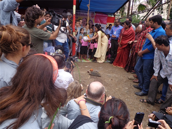 During the Janmasthami week, a well known Indian festival where people celebrate by making human pyramids, members of Spanish origin participated in full swing. A group of 190 people from Spain came to India this year to celebrate the festival. They have their own unique way of creating the human pyramid. With a lot of support from the local corporator and his family, Mumbai Smiles was successful in putting together a massive event and hosted the Spanish Govindas here in Mumbai. The Spanish people – from a different country, a different culture, a different background altogether came to India to perform something very similar to the Indian Govinda festival. People from 2 different worlds but sharing the same passion was the outcome of the grand event held at the powai grounds on the 27 of August. Audience included school children, Balwadi children and the local community. The Spanish Govindas performed with such enthusiasm and perfection that the human pyramid did not break even once, it was indeed a visual treat! Read on through the week to know more about what happened at the event.