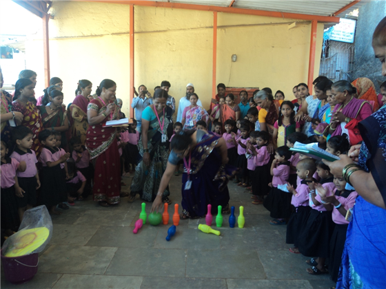 In this context, sports competitions were organized at all our 23 Balwadis from 28th to 31st of January,2014. The primary objective behind organizing these competitions was to enable the students to have fun outside the class environment. Students demonstrated active participation in all the sports such as Basketball, Racing, Book balancing, Lemon spoon etc. The activities were held in open areas surrounding the balwadis. Parents and community people were present to encourage the children. Prizes were distributed among all children as a small gesture for participation.