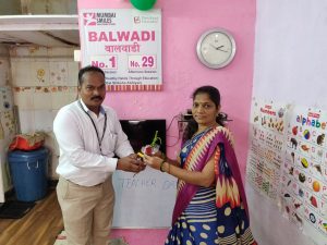 Swathi Kadam and Sanjana Joshi, our teachers from Suryanagar Preschool Centre were felicitated by our field coordinator Mr. Ganesh on Teachers Day. The teachers were immensely delighted and grateful for being felicitated in front of their students. The happiness and excitement of the children was evident when their teachers received a bouquet of flowers and gifts.