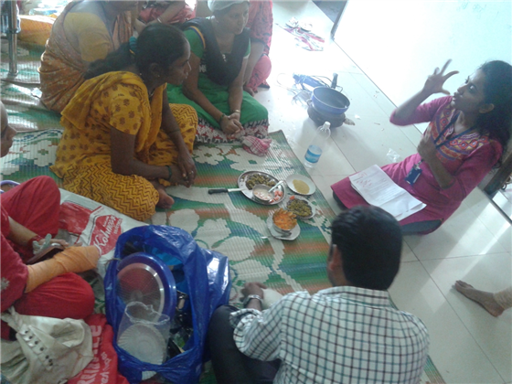 To enlighten the SHGs about the importance of nutrition for children, we conducted this training session. 23 participants from all the 13 SHGs were present for the session that was held on 4th July. Kripa and Bhagyata, trainers from Foundation of Mother and Child Health (FMCH) were present to impart knowledge about the importance of nutrition for children.