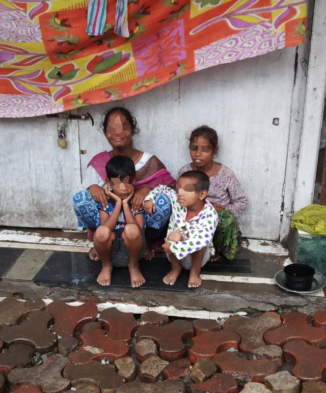 The photo depicts one of our beneficiary families who have been rendered homeless due to the water logging. The children look clueless and agitated but the smile on their mother’s face reflects an optimism and willingness to fight back through the difficulties and offers a ray of hope.