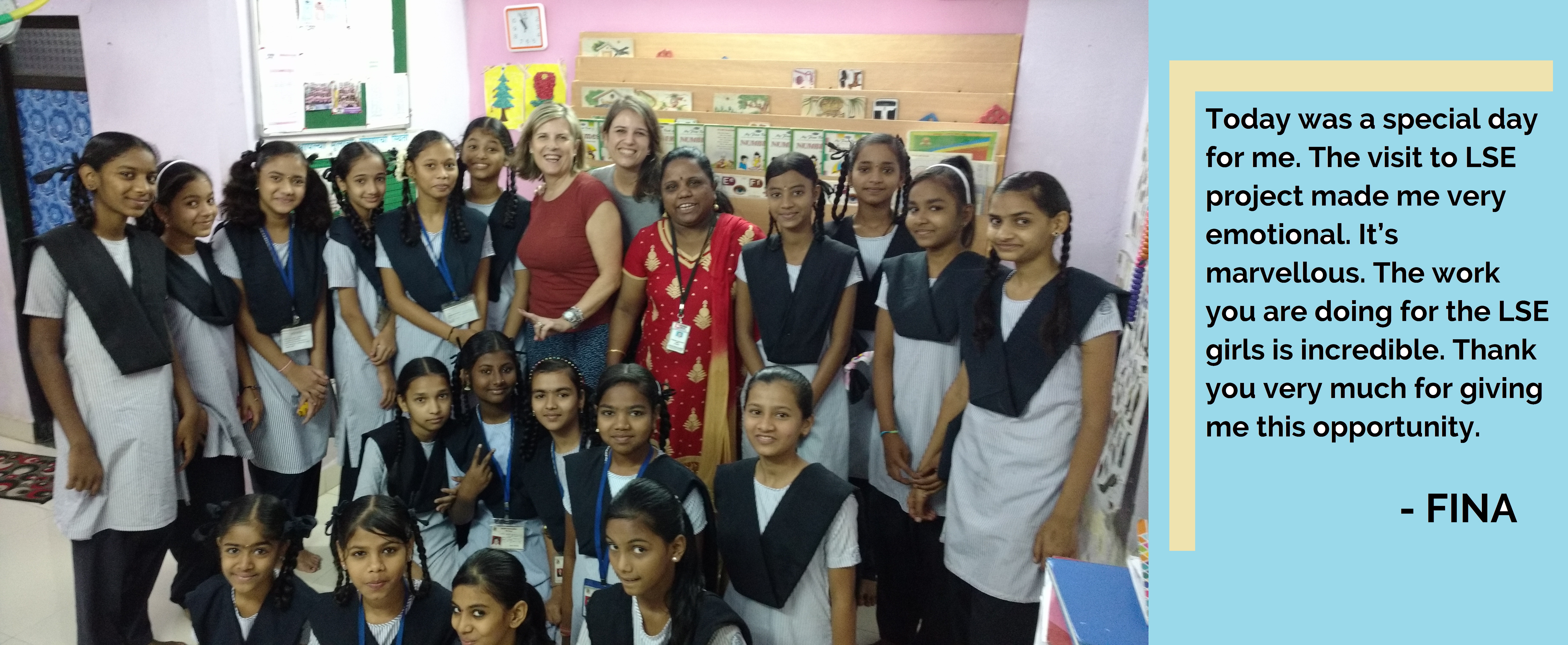 While Lucia lives here in Mumbai with her husband, recently her mother Fina visited her and on her visit to Mumbai, she also decided to come meet us all at Mumbai Smiles Foundation! She met with the entire team and visited our Life Skills Empowerment project. At the session, she chatted with the girls and this is what she had to say about her visit: