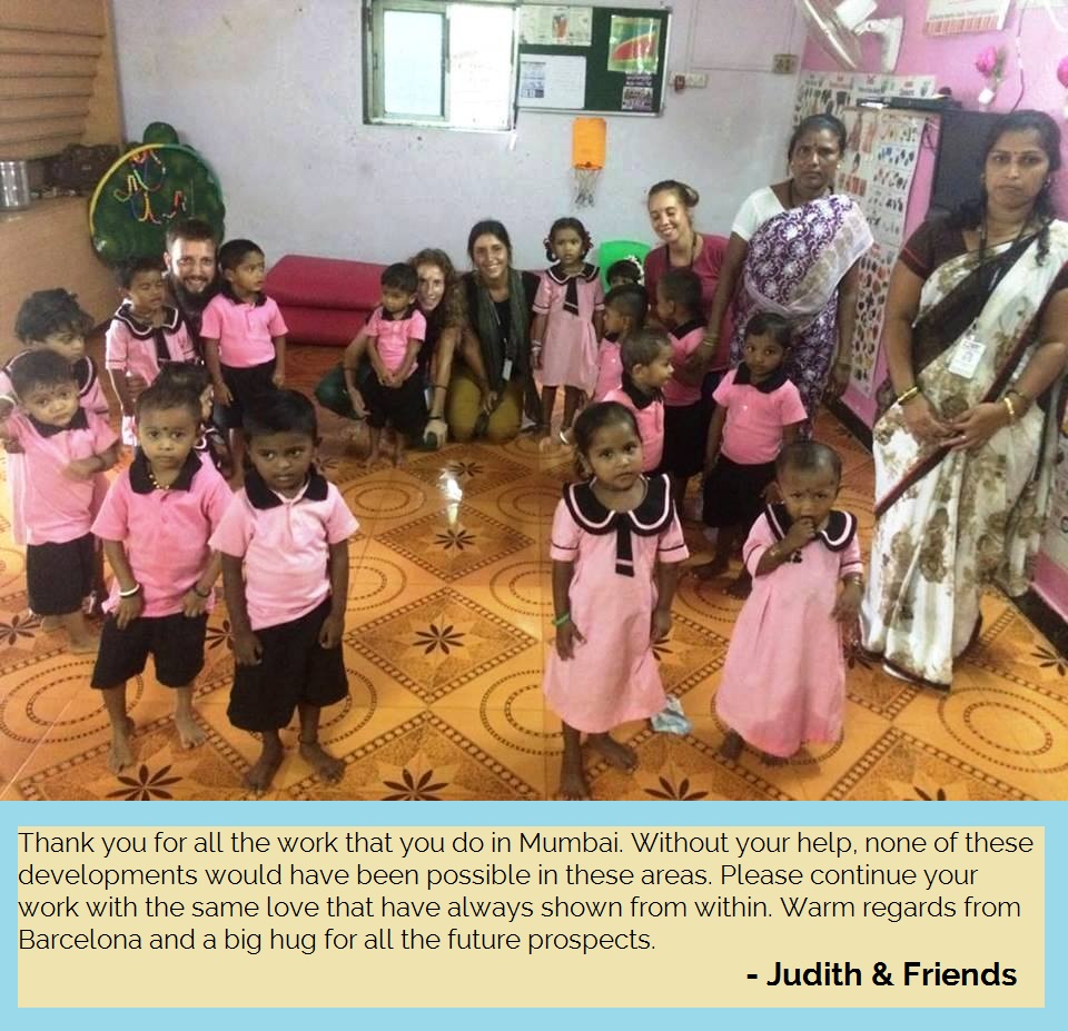 Today we want to share with you the lovely comments of our visitors from Barcelona, Spain, who decided to stop at Mumbai Smiles, for a day of visit recently. They started with our preschool education centres where they interacted with the children and happily participated in their poem and dance routine as well! Following the preschool experience, they visited our Life Skills Empowerment centre. Here, they had a fun time observing the session in action and interacting with the young girls, exchanging information on their countries and culture.