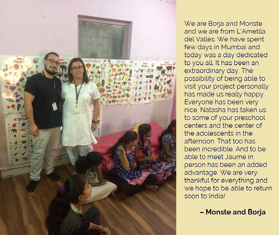 From a small pretty village called L’Ametlla del Vallès in the province of Barcelona, recently came a couple to visit Mumbai Smiles. Montse and Borja came to Mumbai on a nice holiday trip and decided to visit our projects and meet our team!