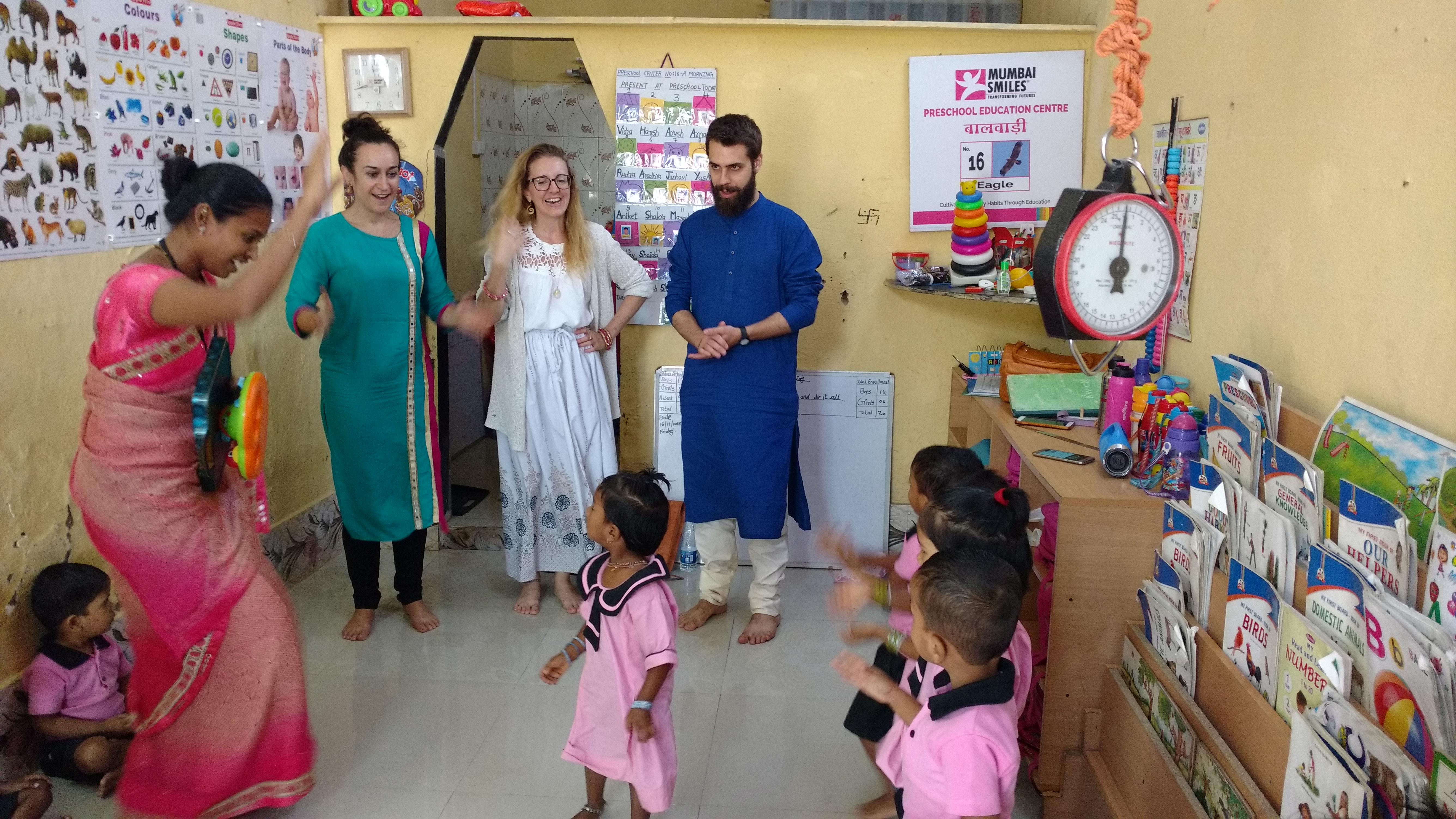 On 16 November 2018, we organised a visit for Monica, Patricia and Daniel. Monica, a professional clown from Spain, is our old friend who had worked with Mumbai Smiles in the past. She came for the visit with her friend Daniel. Patricia runs an NGO to help human trafficking victims in Thailand. We first took them to our preschool and community centre in Powai, where they met the Preschool Education team. The guests also visited the home of Vedika, one of our beneficiaries. We then took them to our Govandi preschool, where Monica formed an instant connection with the kids with the help of her clowning schools. The day ended with a visit to Savitribai Phule Girls’ High School, where the guests met and had a discussion with the Higher Education team.