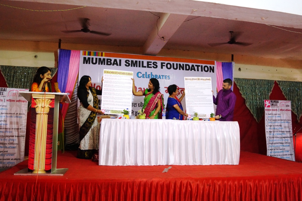 An important segment of the event was felicitating three women from the community, who, over the years, with Mumbai Smiles, have shown tremendous strength and dedication and have been able to change the lives of themselves and their families, and are continuing their work by empowering other women of their communities with sheer perseverance and goodwill. And in this segment only, two posters were released on Rights guaranteed to women by the Constitution of India. We wish all the women, all the very best for their future endeavours and hope to see them succeed even more.