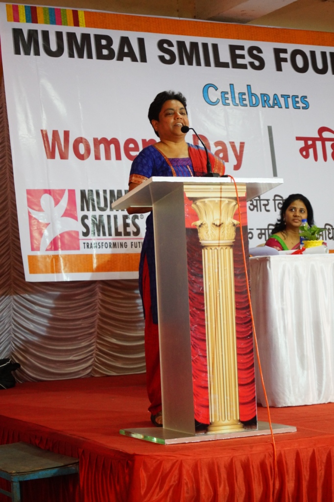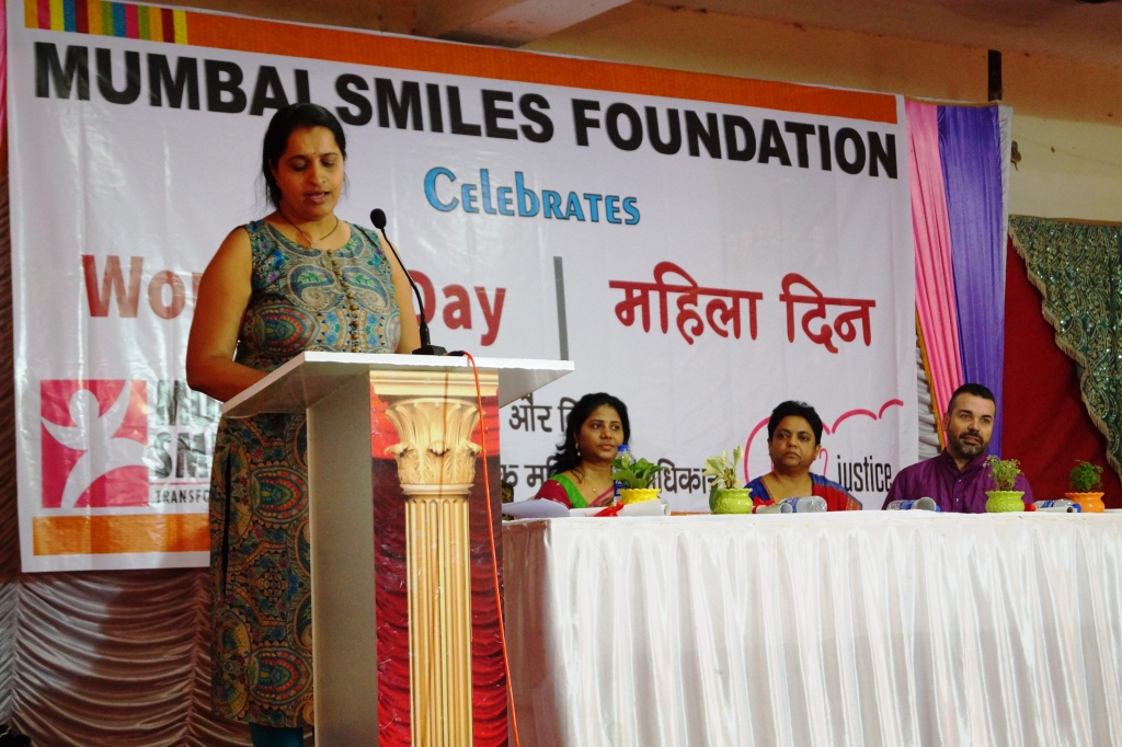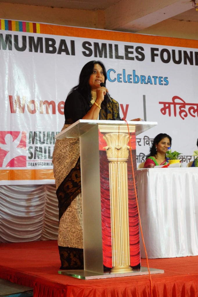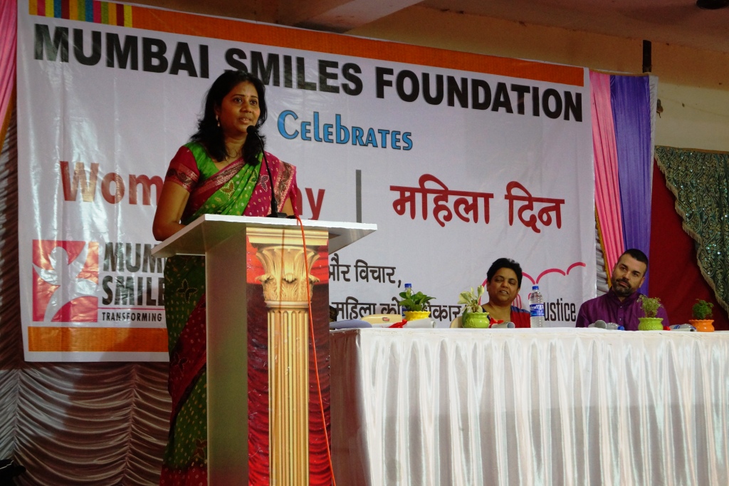 Following short addresses by our Founder & President, Mr. Jaume Sanllorente on how Mumbai Smiles has thrived over the years with the support of all the mothers, sisters and daughters of the communities we work with, and by Unit Head, Accounts & Admin, Mrs. Kushala Shetty on how men and women both must respect each other equally so we can see one day when no one is in need of a fight for Rights, the guest speakers took to stage to share some motivational words with the audience.