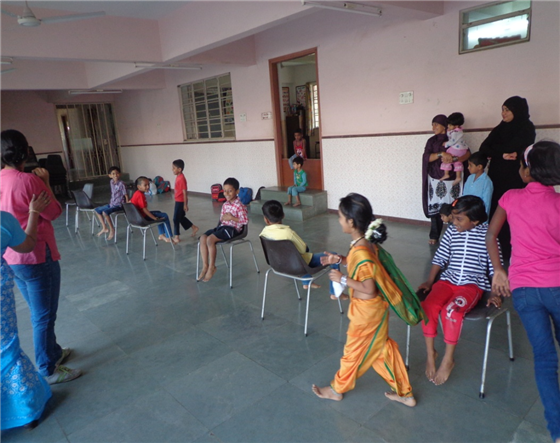 The party started with New Year greetings, followed by a prayer and song by Mark (a child from Crèche) and Crèche children respectively. Subsequently, there were performances by Hope beneficiaries, Ananya and Riddhi. Ananya, a 9 year old HOPE Beneficiary, danced on a Bollywood song and Riddhi Salian, our 4 year old beneficiary, dressed up as “Rani Laxmibai”. At the end, a Musical chair competition was held for children, after which various gifts and snacks were distributed to them.