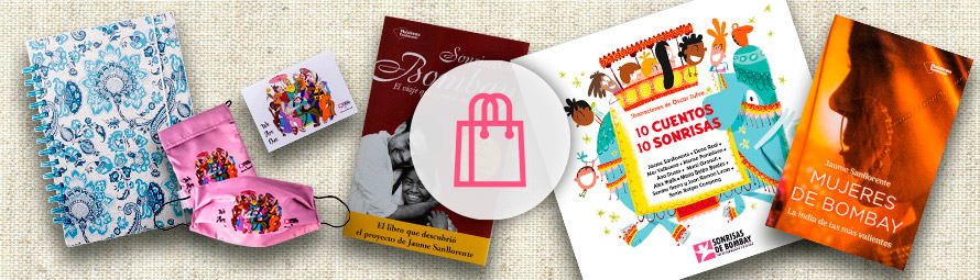 Welcome to our shop! Sorry for the inconvenience as it is currently only available in Spanish. If you want to buy any of our products and you do not live in Spain, please write to us at info@sonrisasdebombay.org. Thanks!