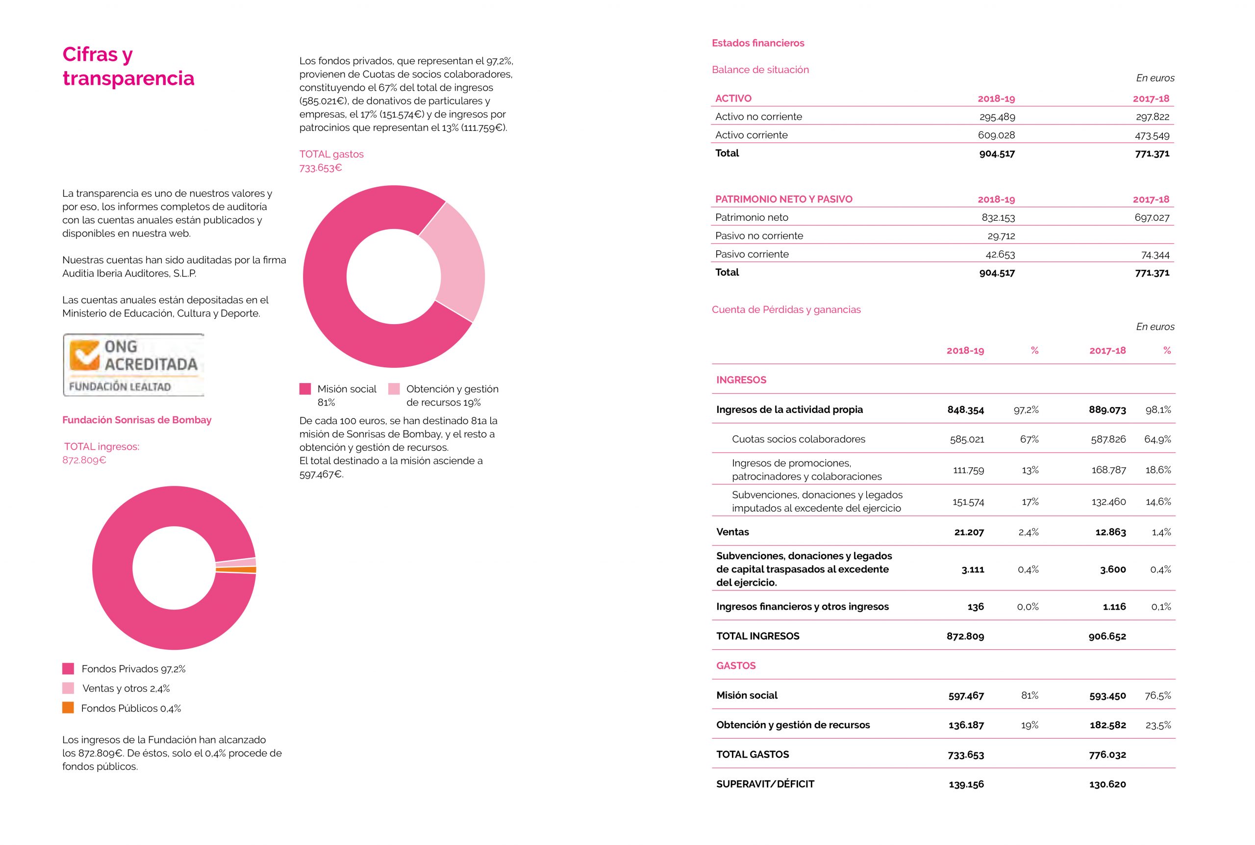 In 2015, we obtained the seal of «accredited NGO» by the ‘Fundación Lealtad’. This badge certifies that we fully comply with the 9 Principles of Transparency and Good Practices and that we are an entity committed to transparency and good management practices.